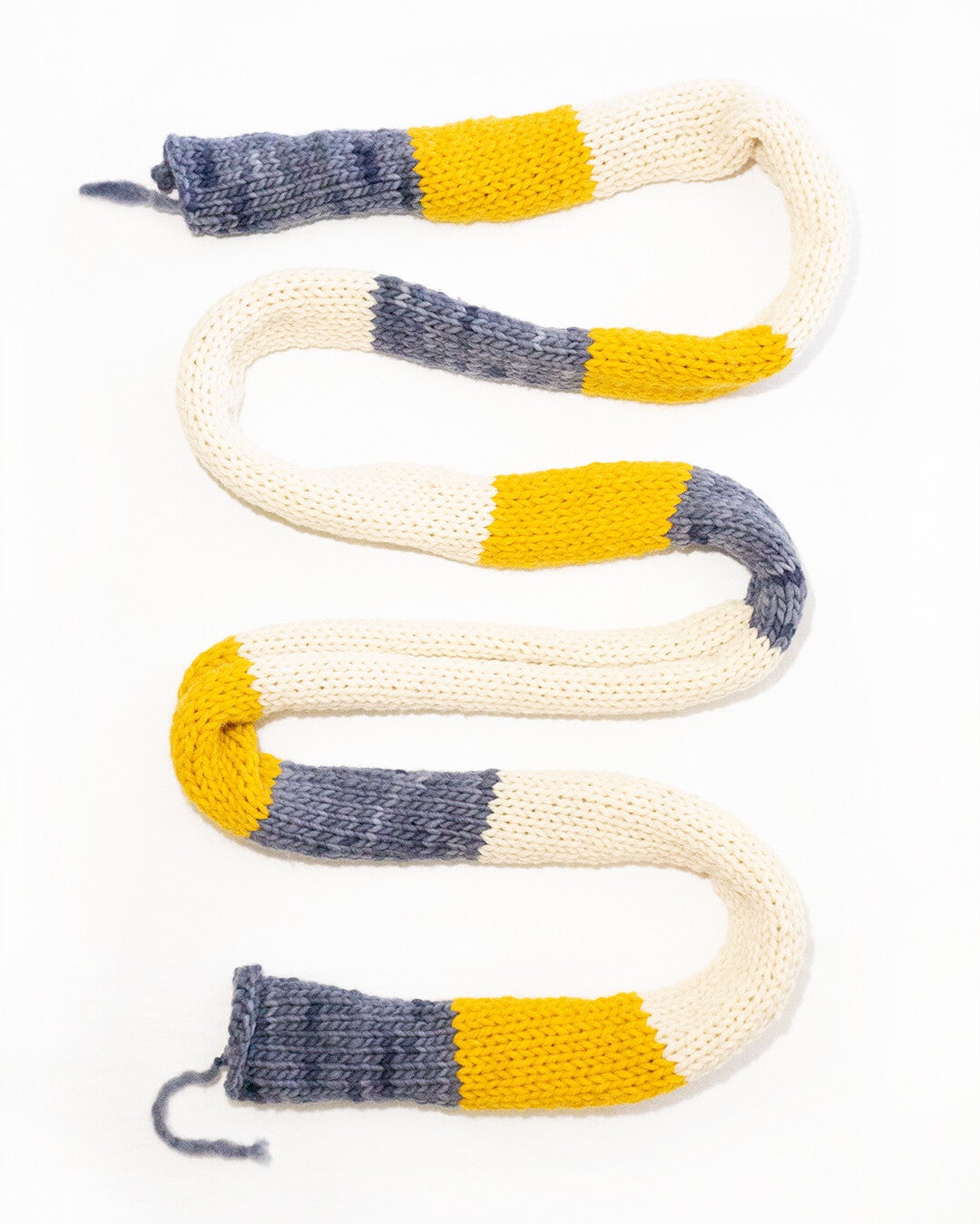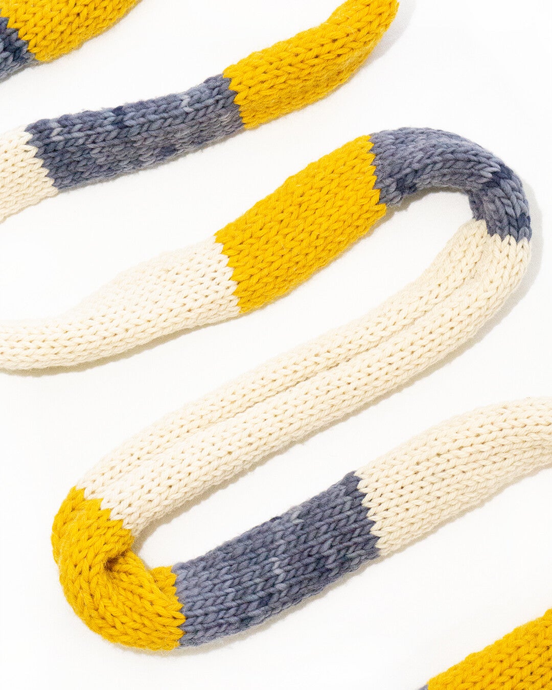 Sciarpa lunghissima e super morbida realizzata in lana abruzzese naturale e tinta con guado. Realizzata ai ferri
