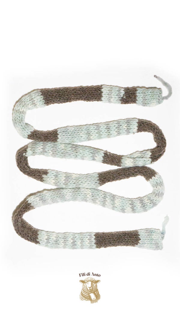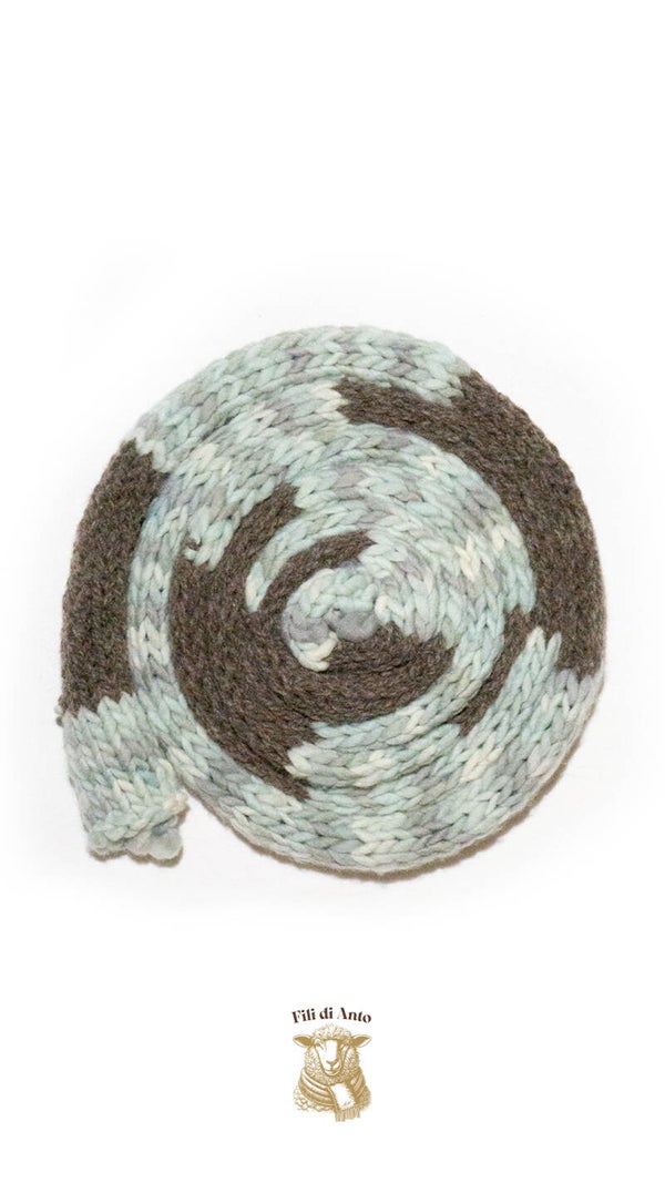 Sciarpa sottilissima e supermorbida realizzata con lana abruzzese tinta con il guado lavorata ai ferri