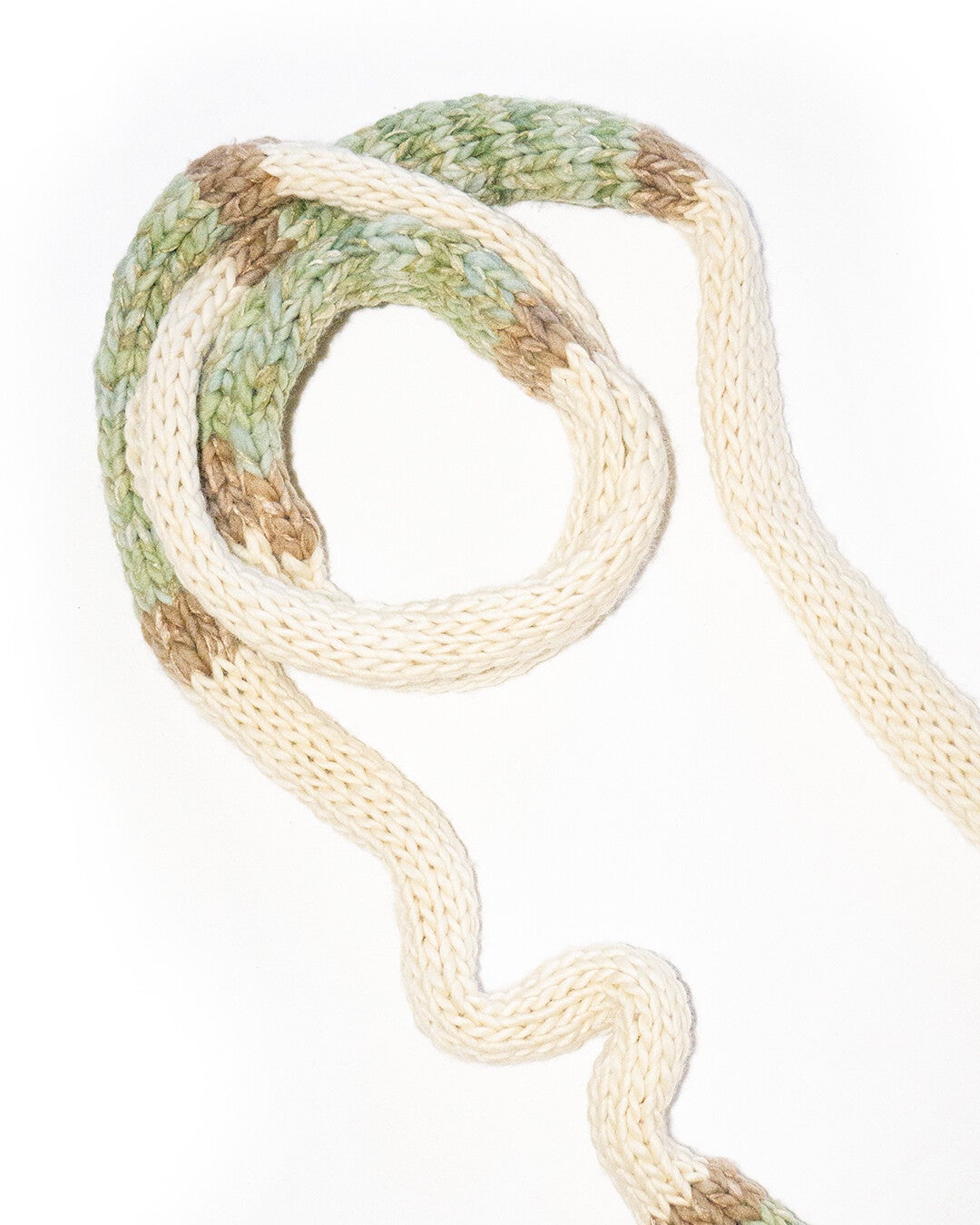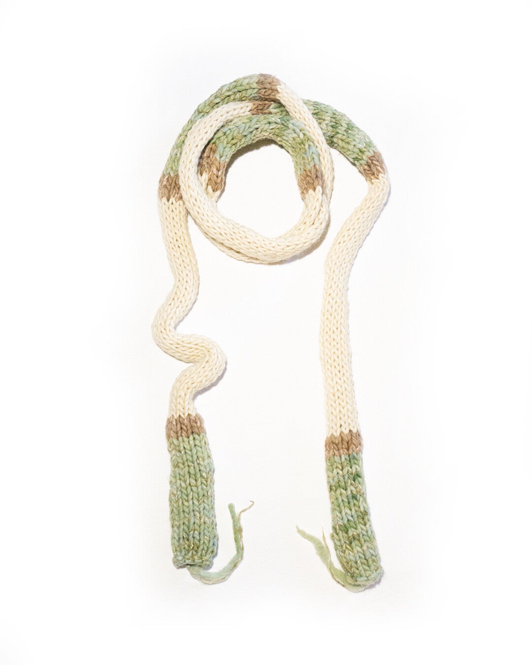Sciarpa sottile e morbidissima realizzata con lana abruzzese naturale e lana abruzzese tinata con mallo di noce e iperico